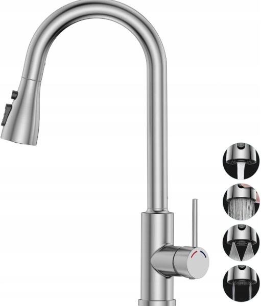 Csaptelep Konyhai Csaptelep Hosszú Kifolyócső 360 4 Permetezési Mód Álló Acél (C1033309)