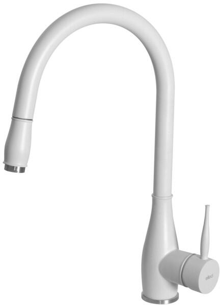 Egykaros modern, ívelt, magas kerámiabetétes csaptelep, oldalsó szabályzóval, forgatható kifolyócsővel, kihúzható fejjel, normál beépítéssel, O35 mm-es furattal. Jelleg: kihúzható fejjel Forma: ívelt Anyag: granitek Szín: G68 bianco Cold start: igen Az azonos színű csaptelepek és mosogatótálcák között, gyártástechnológiai sajátosságokból adódoan színárnyalatbeli különbség előfordulhat. Az Elleci "Cold Start" csaptelepek energiatakarékosak és környezetbarátok, mert csak a hideg víz folyik akkor, amikor a fogantyú középső állásban van, amíg a hagyományos csaptelepek alapállásban azonnal kevert vizet eresztenek.