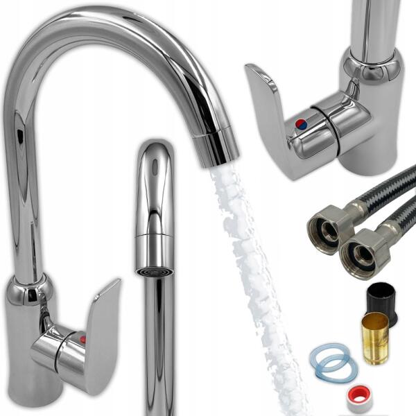 Focus Sanitar Konyhai Csaptelep Mosogató Csaptelep Álló Forgó 360 Tömlők (6001942)ALLEGRO