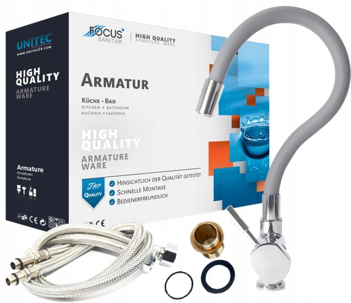 Focus Sanitar Konyhai Csaptelep Szürke Kifolyó Csaptelep Kifolyócsővel Flexibilis Mosogató (6003024v3)ALLEGRO