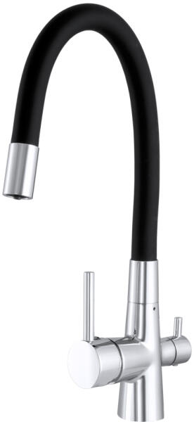 Gamma Flex, háromutas mosogatócsaptelep flexibilis karral, vízszűrő csatlakozóval, matt króm-fekete, GMA-BFXF-CH (GMA-BFXF-CH)