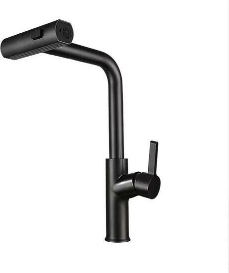 Gamma Rotary Mosogató Csaptelep - Kihúzható, 3 Funkciós Zuhanyfejjel, Matt Fekete (BR-BK) - watermarkt