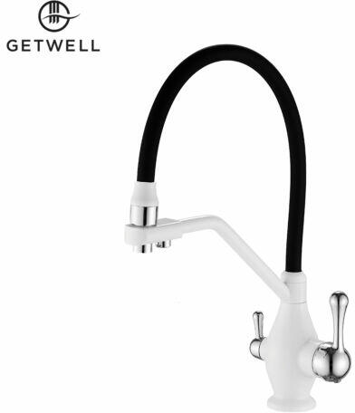 Getwell Pelikan-SP, két karos, 3 utas, kihúzható zuhanyfejes Konyhai Csap Víztisztítókhoz Fehér és Króm színben (GW240WC)