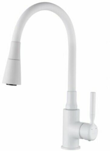INVENA HULA PLUS konyhai csaptelep, flexibilis kifolyócsővel, 2 funkciós zuhanyfej, fehér BZ-85-P02-L (BZ-85-P02-L)