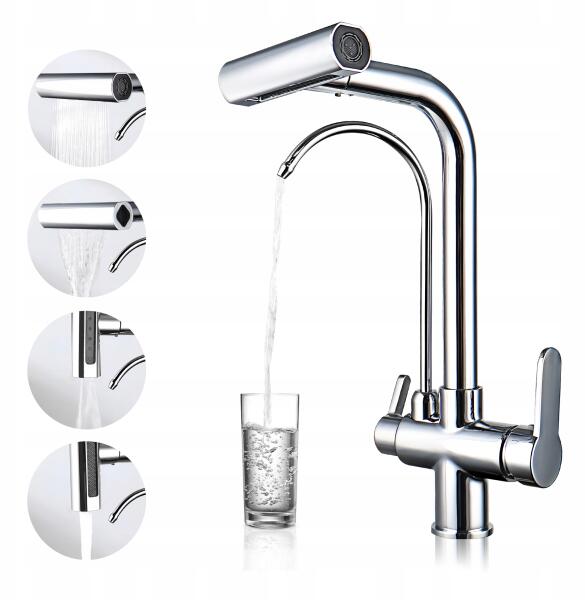 Króm Konyhai Csaptelep Kihúzható Kifolyóval 4 Vízfolyam Mód Vízszűrő (W0097-CHROME)