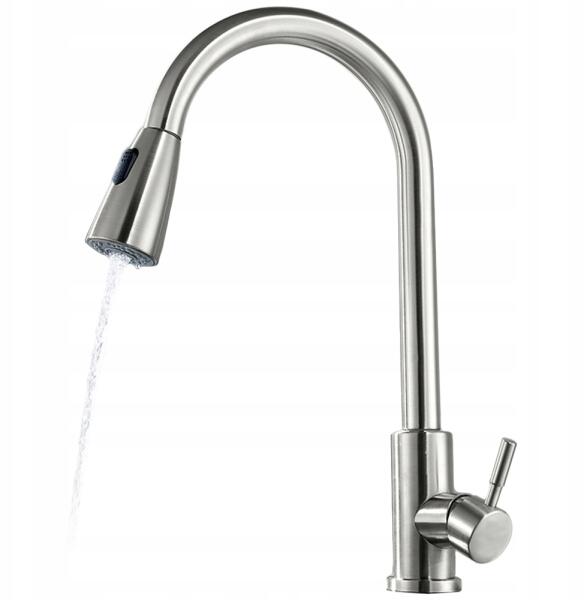 Maibang Konyhai Csaptelep Kihúzható Kifolyócső 2 Üzemmód Szálcsiszolt Acél Csaptelep 2F Szatén (K10732v2)