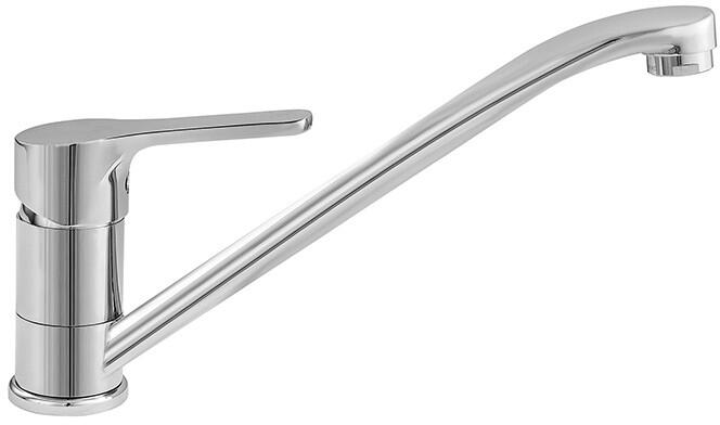 Mofém Pro mosogató csaptelep, álló, egykaros, álló, leeresztő szelep nélkül, forgatható alsó kifolyócsővel. Kifolyócső kinyúlása: 225mm. 5 l/perc vízátbocsátású vízkőmentes perlátorral. Perlátor mérete: M24x1, 35 mm kerámia vezérlőegységgel. Bekötőcső: flexibilis 3/8.