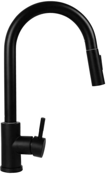 Forgatható álló csaptelep elegáns, teljesen fekete kivitelben, amely modern és hagyományos belső terekhez egyaránt illik. Keretműves kerámia kazetták a hosszú élettartamért és zavartalan működésért. Egykaros kialakítás a vízhőmérséklet és áramlás folyamatos szabályozásához. Gyakorlati váltó a zuhany és a kifolyó között a nagyobb mosási rugalmasság érdekében. A mosogató csaptelep magassága 380 mm – ideális a kényelmes használathoz. Könnyű szerelés 2 rugalmas csatlakozó tömlővel (350 mm). Szükséges furat átmérője 35 mm.