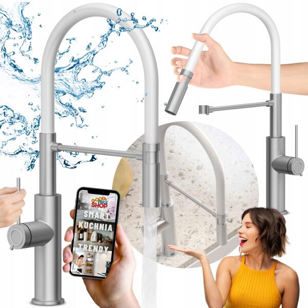 SINK Quality Konyhai Csaptelep Flexibilis Mozgatható Kifolyócsővel Fehér Extra Magas Csaptelep 50cm (KTS.S.JEM.WHBS)ALLEGRO