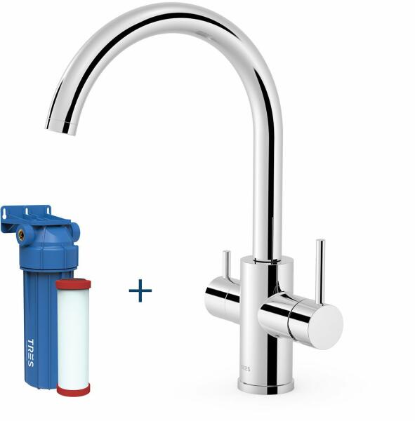 TresGriferia Tres DUAL-SOURCE mosogató csaptelep kétfunkciós KRÓM + víztisztító filter (23045402)