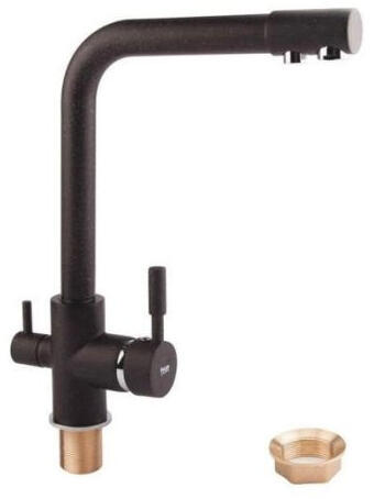 Zegor 3 utas, flexibilis, kerámia betétes csap, krómozott kivitelben, tartozékokkal együtt. Víztisztító berendezéseknél a hideg és a meleg csapvizet, valamint a tiszta vizet szolgáltató csap. Ideális, elegáns megoldás azoknak, például albérletben lakók számára, akik nem szeretnének külön lyukat fúrni a mosogatótálcára a tiszta vizes csapnak. A hideg és meleg vízhez tartozó flexibilis kifolyócső rugalmasan változtatható.