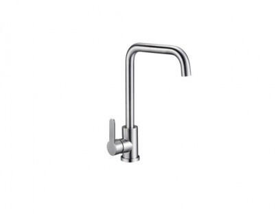 Egykaros konyhai mosogató csaptelep. Szín: rozsdamentes. Tökéletesen kiegészíti a konyha belsejét egy lakásban vagy vidéki házban. Kiváló minőségű rozsdamentes acélból, GOST-08Х18Н10(18/10). A 35 mm-es kerámiapatron lehetővé teszi a hőmérséklet és a víznyomás pontos beállítását. Kifolyó 360 fokos forgatással. Műanyag szellőztető egyszerű tisztítási funkcióval. Szemceruza szabvány: G 1/2, rugalmas. Beépítés: mosogatóra, 1 lyuk, max. asztallap vastagsága 30 mm.